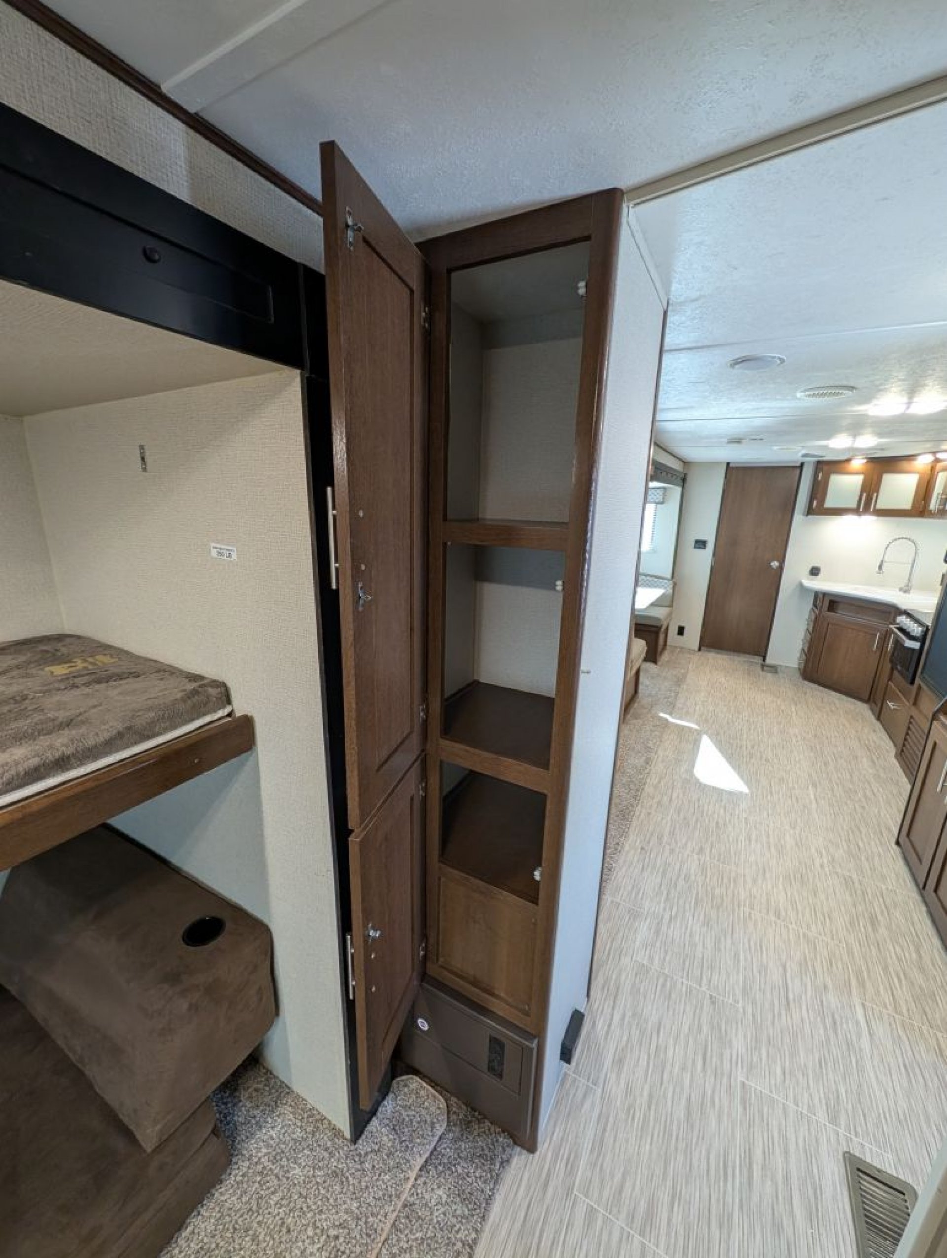Rear bunk room with 2 bunks + storage closet – perfect for the kids